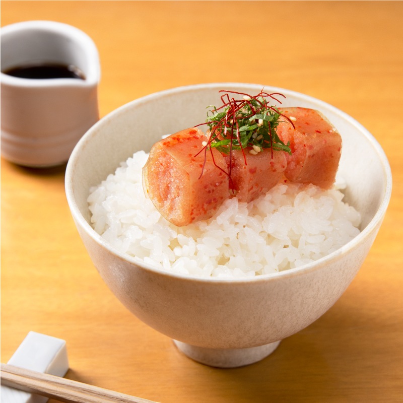 解凍した明太子を、ごはんの上に1本まるごと乗せましょう。
